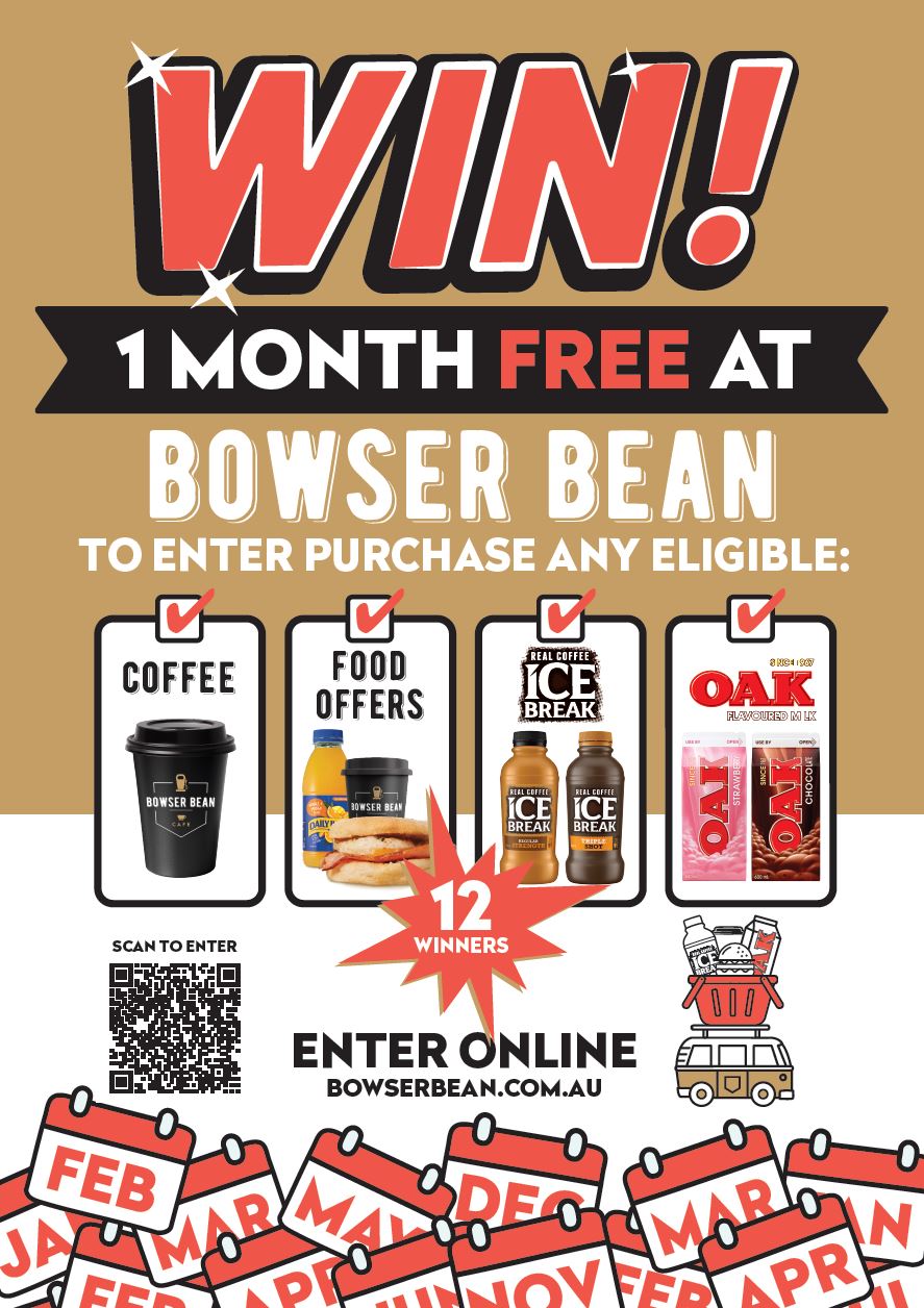 Enter here to WIN a Month Free at Bowser Bean! 12 prizes up for grabs - 1 winner per month for 2026! Purchase any eligible products and upload your receipt to be in the draw. T&Cs apply.