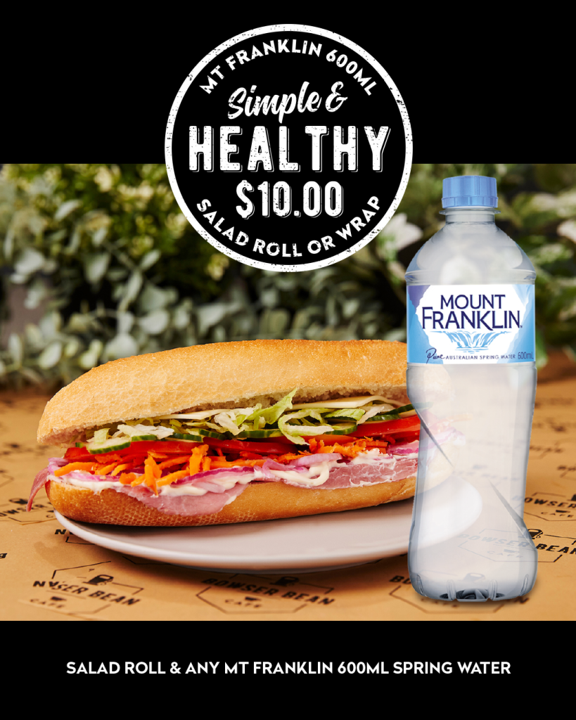 Grab any Salad Roll or Wrap plus a Mount Franklin 600mL for only $10.