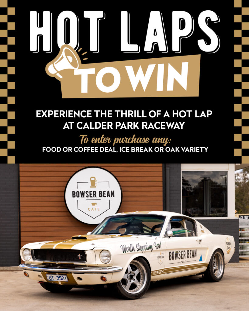 Live life in the fats lane - your chance to win Hot Laps at Calder Park! Purchase any Bowser Bean Food or Coffee Deal, Ice Break variety or Oak variety to go in the draw. Competition valid at all Bowser Bean sites, and selected Bowser Bound sites. Monday 6th April - Sunday 26th April. Full T&C's apply.